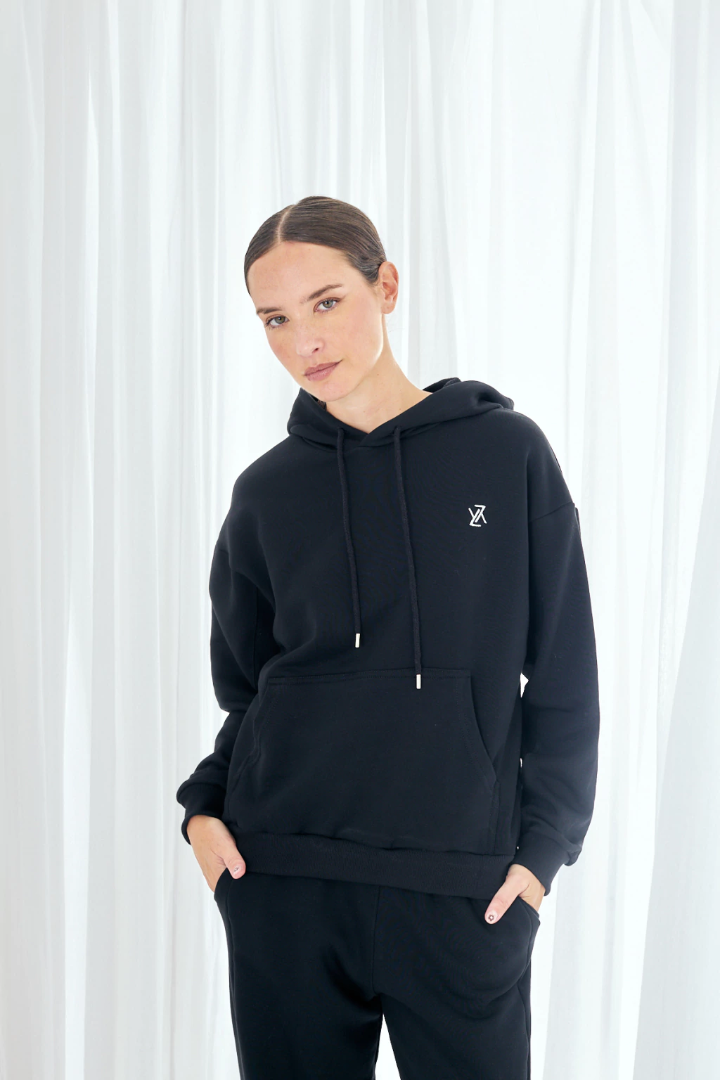 Buzo Canguro Con Capucha Y Recortes En Las Mangas. Confeccionado En Rustico De Algodon, Combinado Con Ribb A Tono Y Con Logo Bordado En Lurex En El Frente