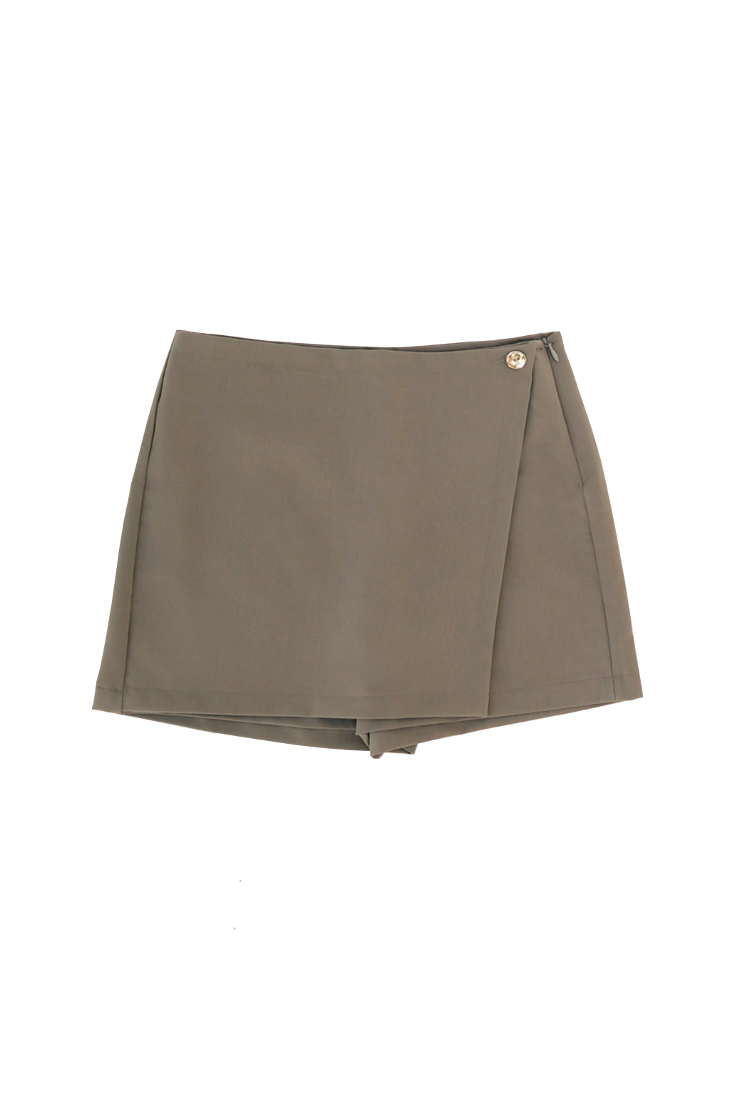 Short Tiro Medio Con Solapa En El Frente Con Ojal Y Boton Para Abrochar Y Cierre Invisible En El Lateral. Confeccionada En Twill Sastrero Con Spandex