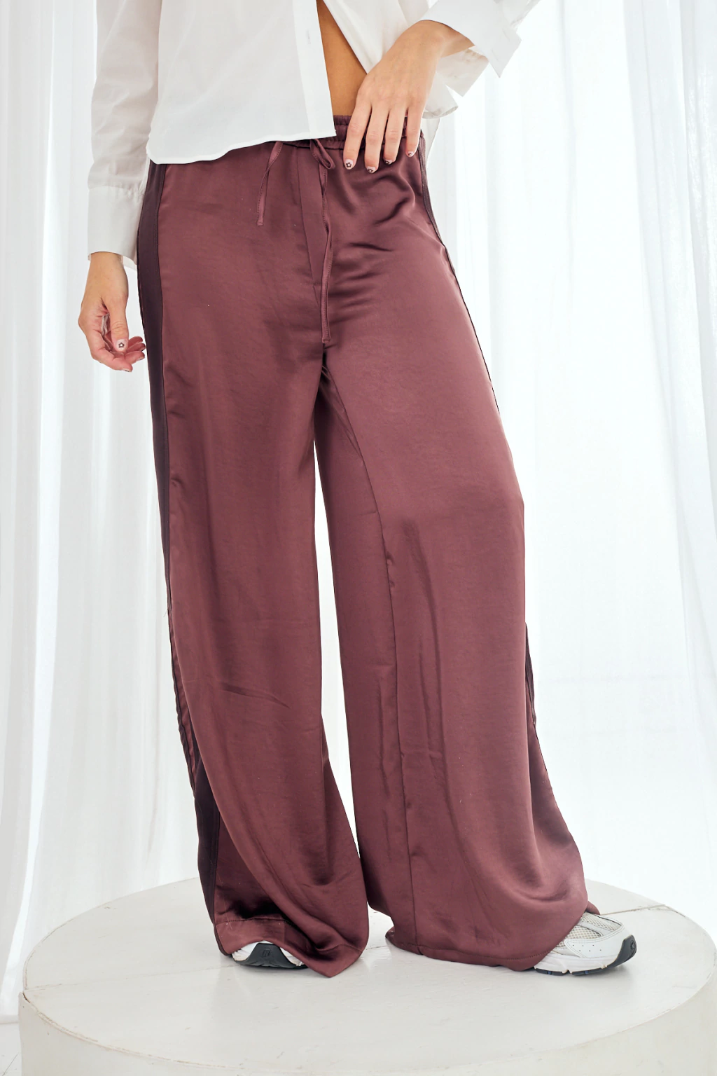 Pantalon Wide Leg Tiro Alto Con Elastico En La Cintura Y Tiras En Los Laterales. Confeccionado En Sedita Pesada