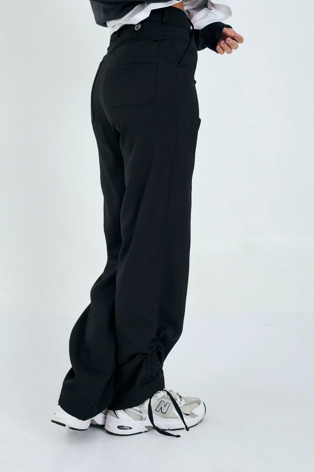 Pantalon Tiro Alto Con Calce Wide Leg, Con Fuelles En Los Laterales Con Tiras Para Ajustar Y Botones Snap En La Cintura. Confeccionado En Twill Sastrero De Poliester Con Tacto Gamuzado