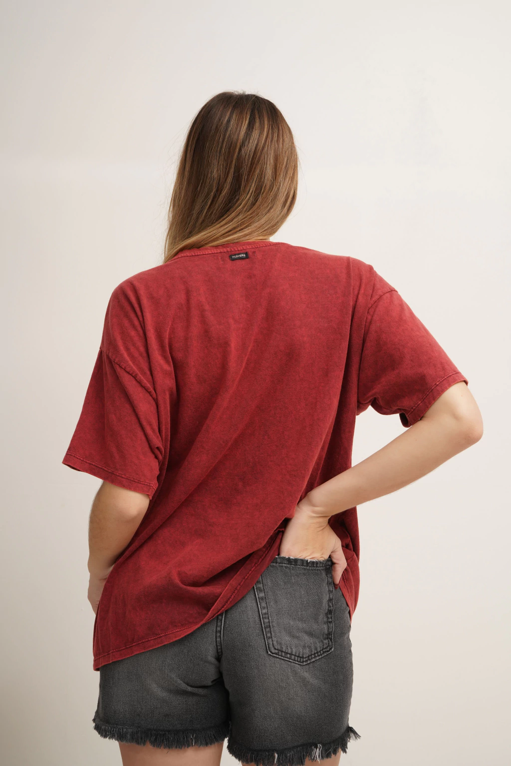 Remerón largo de manga corta con escote redondo, confeccionado en suave jersey procesado. Presenta una estampa en el frente inspirada en la icónica banda británica Oasis. India usa talle S completa el look con Bermuda Luton black
