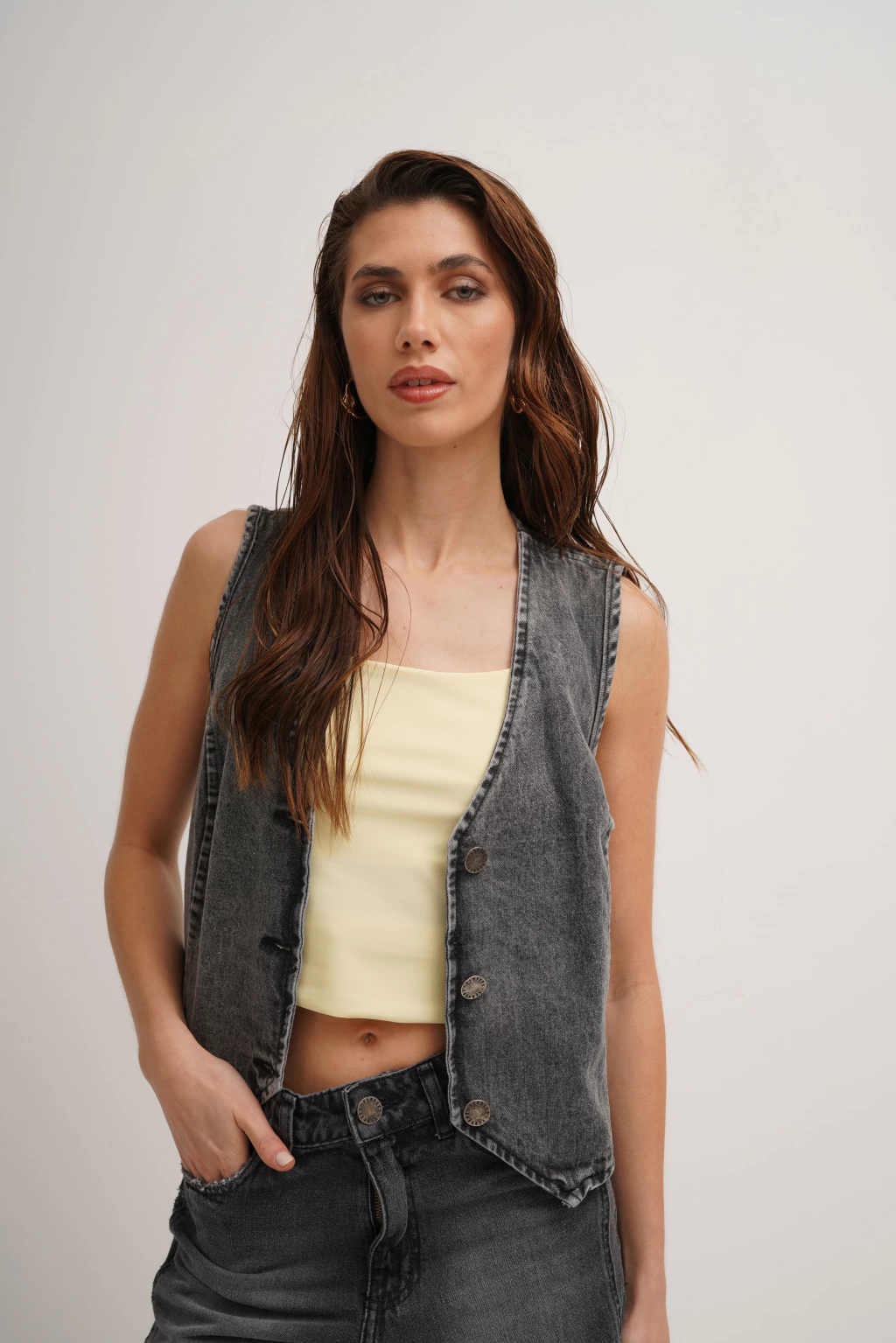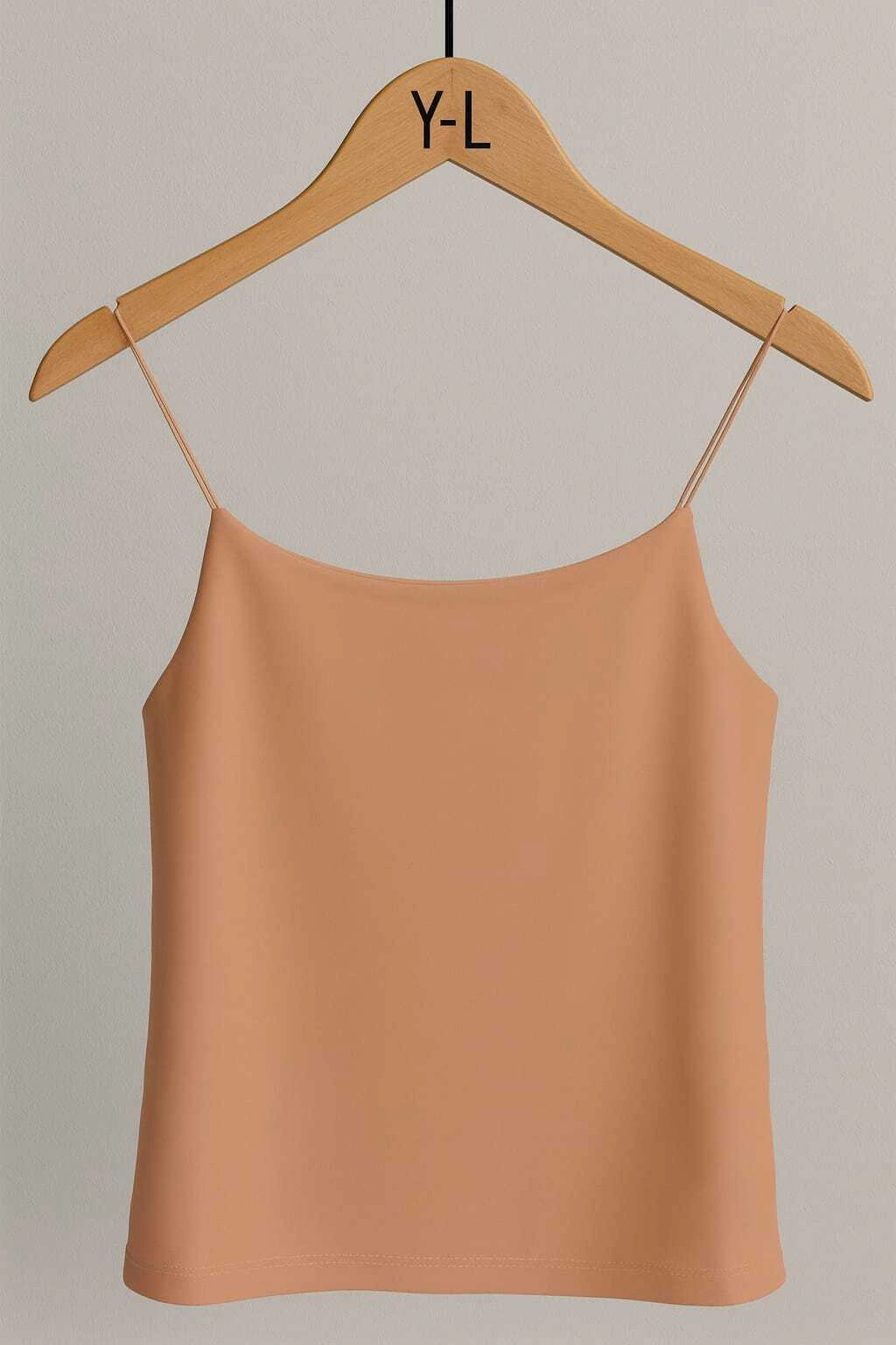 Top bretelero al cuerpo, con escote redondeado y embolsado hasta el bajo busto para mayor contención.